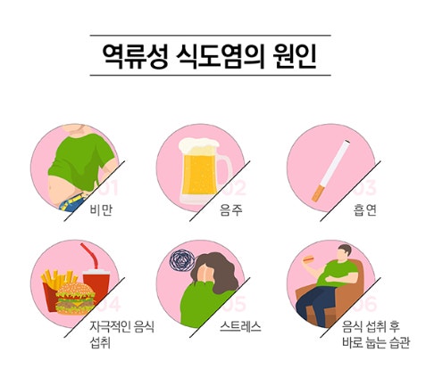 - 비만과 복부비만 : 위를 누르는 압력이 강해져 위장의 내용물이 역류하게 됩니다.