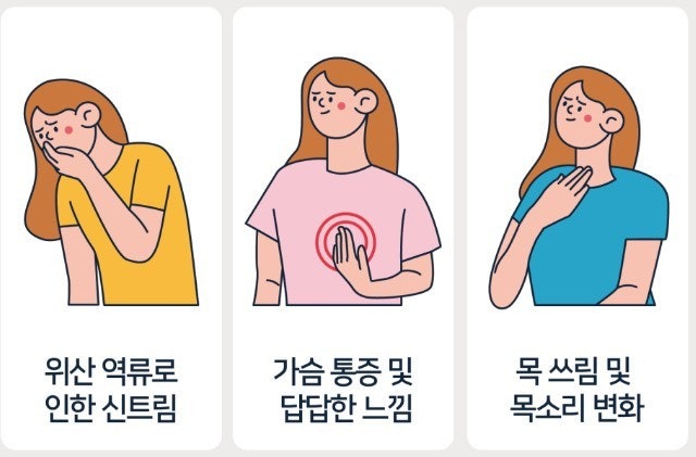 - 쉰목소리 : 성대가 위산에 자극을 받아 변성됩니다.